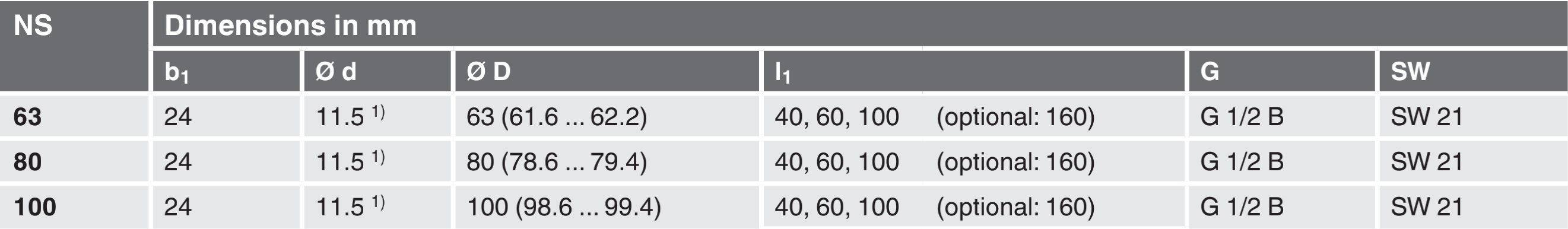 | Nominal size | 63mm, 80mm, 100mm |